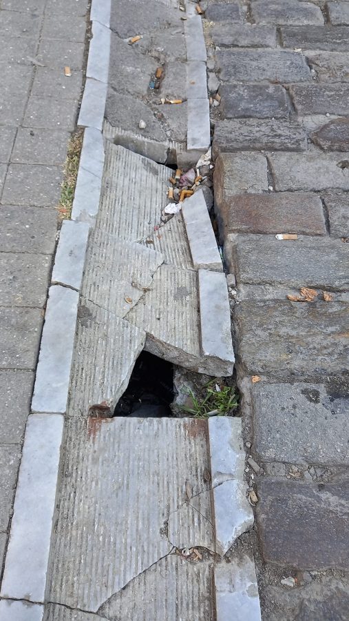 Σπασμένα πλακάκια συνιστούν παγίδες για τους περαστικούς του Καπανίου στη Θεσσαλονίκη, πληγώνοντας την αισθητική της πόλης αλλά και την πλούσια ιστορία της αγοράς.