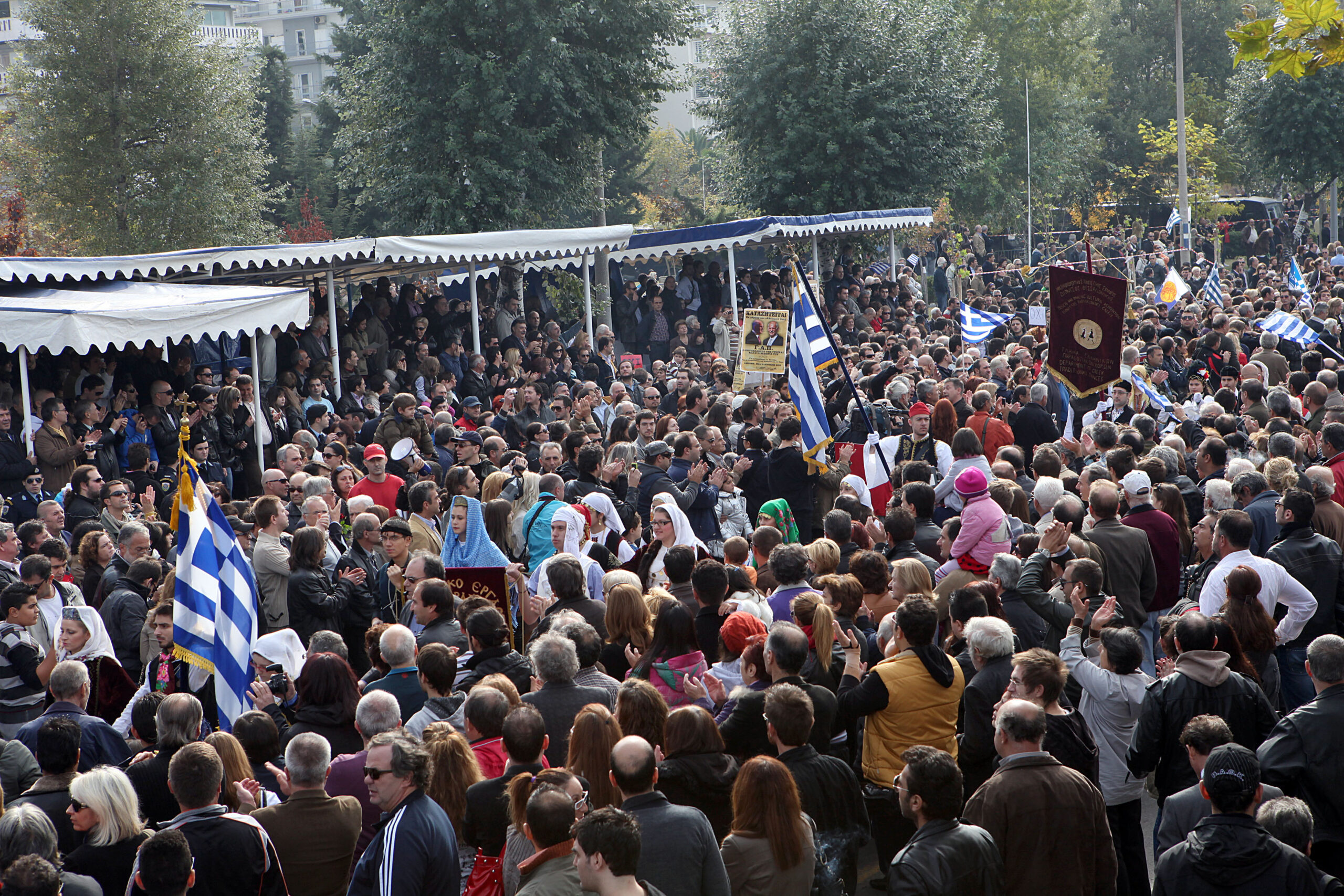 Υπάρχουν πόλεις που γιορτάζουν, κι άλλες που απλώς αργούν. Η Θεσσαλονίκη δεν κάνει ούτε το ένα ούτε το άλλο. Εγκλωβισμένη κάπου ανάμεσα σε λιτανεία και παρέλαση, ανάμεσα στο λιβάνι και τη σάλπιγγα, μοιάζει κάθε Οκτώβρη να κοιτάζει τον εαυτό της στον καθρέφτη του ιστορικού της ρόλου: λίγο άγια, λίγο ανυπάκουη, λίγο κουρασμένη από το να αποδεικνύει διαρκώς ότι είναι «σπουδαία πόλη».