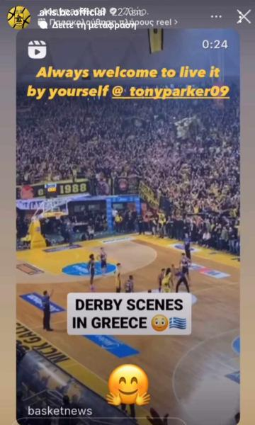 Η φοβερή ατμόσφαιρα που δημιούργησαν οι φίλοι του Άρη στο Nick Galis Hall κατά τον πρόσφατο αγώνα με τον ΠΑΟΚ προκάλεσε θαυμασμό, συμπεριλαμβανομένου και του Τόνι Πάρκερ.
