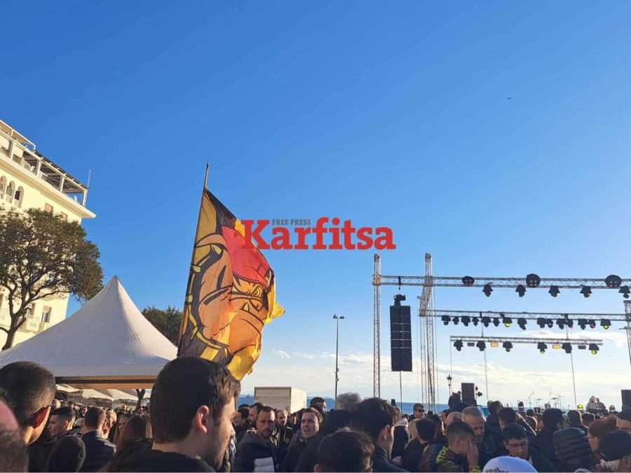 Χιλιάδες φίλοι του Άρη βρίσκονται στην πλατεία Αριστοτέλους για τη γιορτή του συλλόγου, για τα 110α γενέθλια της ομάδας.
