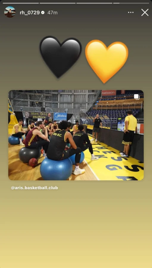 Η ανάρτηση δείχνει την εκτίμηση του νεαρού ιδιοκτήτη για την πόλη και τη νέα του ομάδα, λίγες ώρες πριν τη δραστηριότητά του στο παρκέ με τον Άρη.