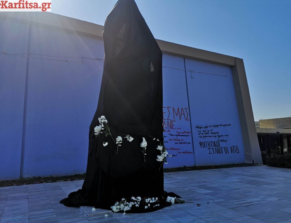 Με μαύρο πανί καλύφθηκε από φοιτητές το Άγαλμα του Αριστοτέλη, ως ένδειξη πένθους και θρήνου για τους δώδεκα φοιτητές που...