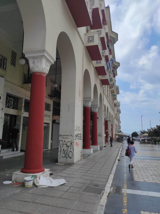 Συνεργείο του δήμου Θεσσαλονίκης ξεκίνησε από το πρωί την αποκατάσταση των κιόνων, με στόχο την αναβάθμιση του χώρου. Το προηγούμενο διάστημα είχαν προηγηθεί οι επισκευές στο δάπεδο του άξονα Αριστοτέλους και η αποκατάσταση των μαρμάρων και των πλακών που είτε είχαν ξεκολλήσει, είτε είχαν σπάσει εγκυμονώντας κινδύνους για τους πεζούς.