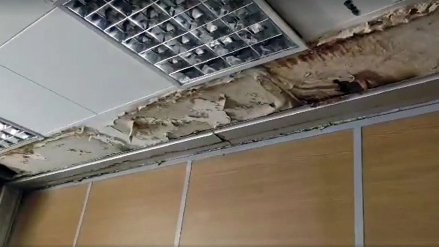 Εκεί, στεγάζονται τα γραφεία της κοινότητας, η αίθουσα συνεδριάσεων του συμβουλίου, η διεύθυνση Αθλητισμού και το παιδικό Μουσείο. Μια βροχή χρειάζεται μόνο για να μετατραπεί ο χώρος σε ακατάλληλο και επικίνδυνο κτίριο.