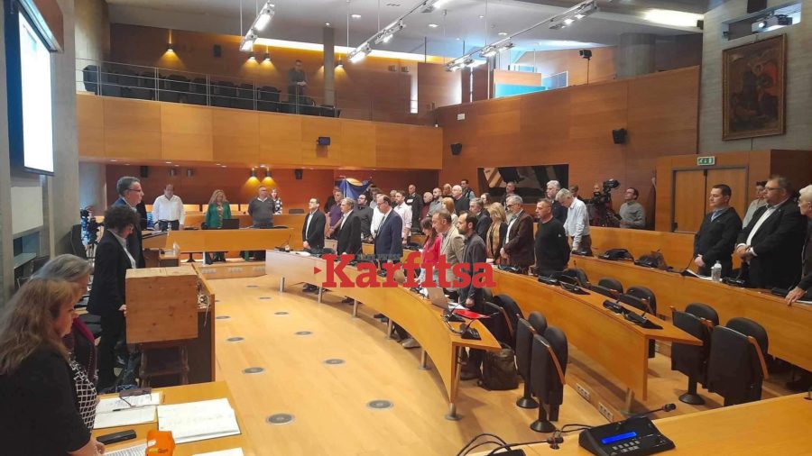 Ενός λεπτού σιγή στη μνήμη των 57 θυμάτων των Τεμπών τηρήθηκε πριν την έναρξη της σημερινής ειδικής συνεδρίασης του δημοτικού συμβουλίου του δήμου Θεσσαλονίκης.