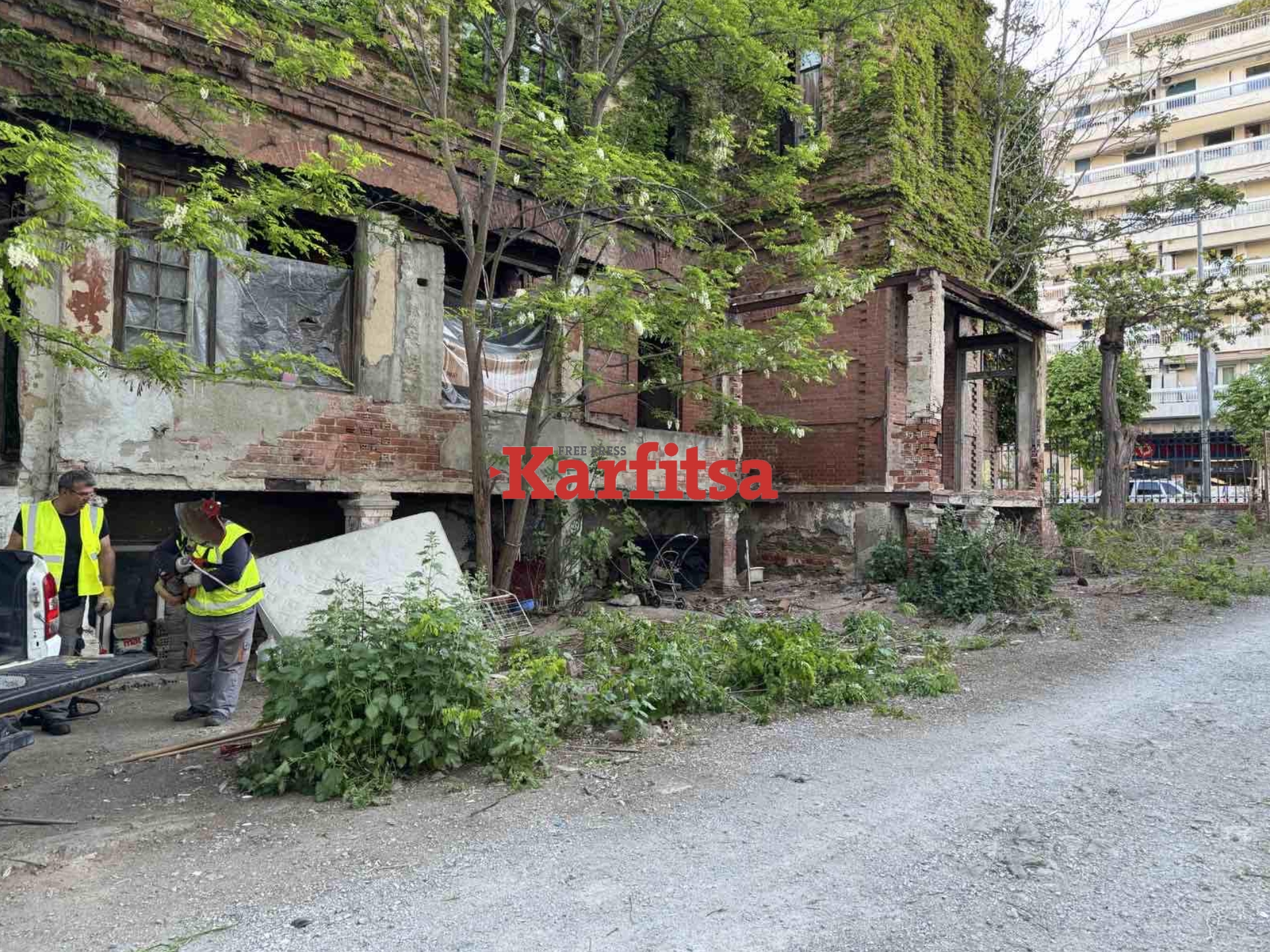 Συνεργεία της Υπηρεσίας Καθαριότητας του δήμου και της Δημοτικής Αστυνομίας βρέθηκαν στον χώρο, επί της οδού Βασ. Όλγας, για να ξεκινήσει ο καθαρισμός από τα μπάζα, τα σκουπίδια και την οργιώδη βλάστηση, σύμφωνα με το ΑΠΕ-ΜΠΕ.