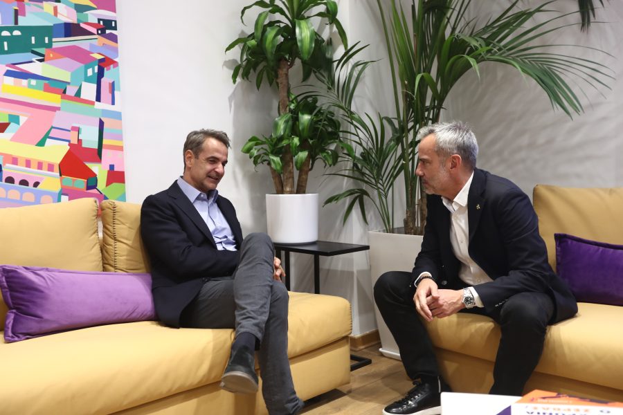 Επίσκεψη του Πρωθυπουργού Κυριάκου Μητσοτάκη στο εκλογικό κέντρο του υποψηφίου δημάρχου Θεσσαλονίκης Κωνσταντίνου Ζέρβα. Τετάρτη 4 Οκτωβρίου 2023 (ΒΑΣΙΛΗΣ ΒΕΡΒΕΡΙΔΗΣ / ΜΟΤΙΟΝ ΤΕΑΜ)