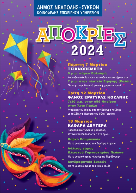 Η Καθαρά Δευτέρα έχει παράδοση στο δήμο Νεάπολης-Συκεών. Είναι η μέρα που συμβολίζει την έναρξη της Σαρακοστής και η γιορτινή διάθεση διακατέχει τους δημότες ανεξαρτήτως ηλικίας. Επειδή ο δήμαρχος Σίμος Δανιηλίδης θεωρεί πως σε ανάλογες εκδηλώσεις πρέπει να έχουν πρόσβαση όλοι στο δήμο διοργανώνονται τρεις εκδηλώσεις που τα έχουν όλα και φυσικά δωρεάν.