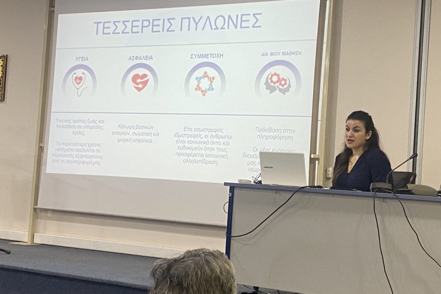 Παράλληλα με την ξενάγηση στην έκθεση, τα άτομα της τρίτης ηλικίας έχουν την ευκαιρία να συζητήσουν για θέματα που αφορούν την υγιή γήρανση αλλά και την κακοποίηση των ηλικιωμένων με την ψυχολόγο της ελληνικής αστυνομίας υπαστυνόμο Β΄ Βασιλική-Αλίκη Νικοπούλου.