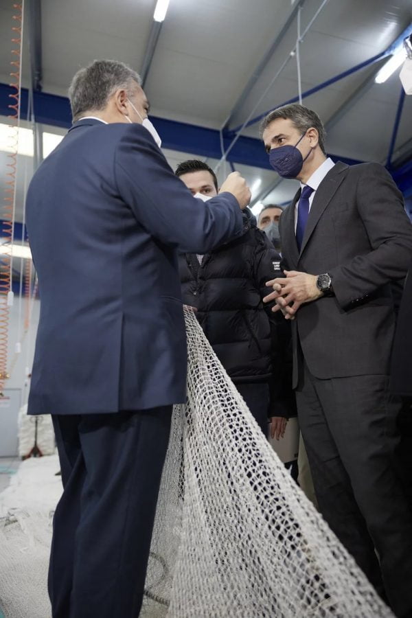 Ο πρωθυπουργός εστίασε στο πρόγραμμα καταπολέμησης της ανεργίας που εφαρμόζει η εταιρεία μας δημιουργώντας τμήμα εκμάθησης ραφής διχτυών σε Συνεργασία με τον Πολιτιστικό Σύλλογο Μηχανιώνας και μάλιστα ανέφερε ότι αυτό θα είναι το μοντέλο που θέλει η ελληνική Πολιτεία να εφαρμόσει. Η εκπαίδευση δηλαδή των ανέργων να γίνεται και από τις επιχειρήσεις, σύμφωνα με τις ιδιαιτερότητες και τις ανάγκες της κάθε περιοχής. Μάλιστα ο κ.Μητσοτάκης κατά την επίσκεψη του είπε χαρακτηριστικά ότι «τελικά δεν έχω συναντήσει καμία επιτυχημένη επιχείρηση στην οποία να μην υπάρχει καλό κλίμα μεταξύ εργοδοσίας και εργαζομένων».