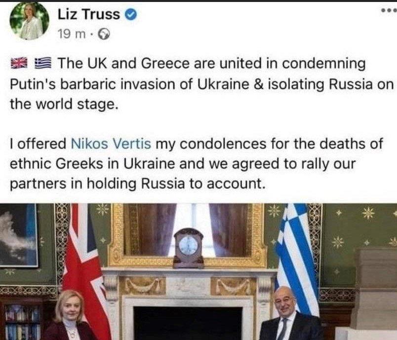 Δεν θα μπορούσε να περάσει απαρατήρητη η ανάρτηση της βρετανίδας υπουργού Εξωτερικών Λίζα Τρας η οποία θέλησε να ενημερώσει για τη συνάντησή της με τον έλληνα ομόλογό της Νίκο Δένδια.