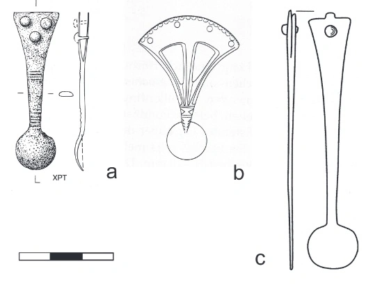 Στην τελευταία μελέτη, που δημοσιεύθηκε στο περιοδικό Praehistorische Zeitschrift, οι ερευνητές κατηγοριοποίησαν 241 αντικείμενα σε σχήμα κουταλιού που βρέθηκαν σε 116 βάλτους και τάφους που χρονολογούνται από τη ρωμαϊκή εποχή. Τα αντικείμενα είχαν ως επί το πλείστον μήκος μεταξύ 40 και 70 χιλιοστά, είχαν βρεθεί μαζί με πολεμικό εξοπλισμό και πιστεύεται ότι ήταν προσαρτημένα στις ζώνες των πολεμιστών.