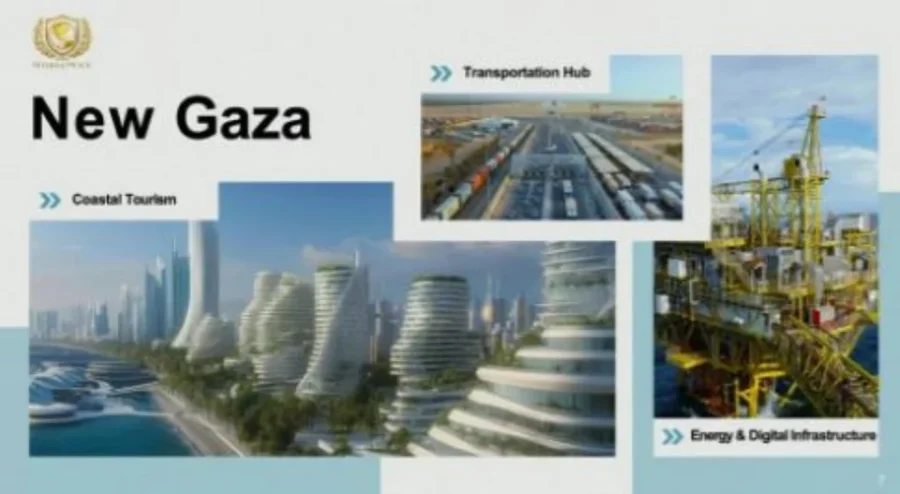 Ο γαμπρός του Ντόναλντ Τραμπ, Τζάρεντ Κούσνερ, ο οποίος διαδραμάτισε καθοριστικό ρόλο στη διαμεσολάβηση για το ειρηνευτικό σχέδιο στη Γάζα, έλαβε τον λόγο στην τελετή συγκρότησης του Συμβουλίου Ειρήνης. Αφού εκθείασε τον Αμερικανό πρόεδρο, παρουσίασε ένα «γενικό σχέδιο» για το μέλλον της Γάζας, με τον ακόλουθο χάρτη: