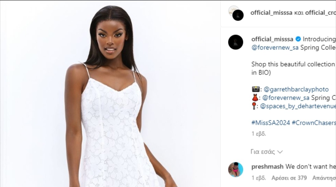 Μία υποψήφια για τον τίτλο Μις Νότια Αφρική, η οποία βρίσκεται στο επίκεντρο μιας οξείας ξενοφοβικής αντιπαράθεσης στα μέσα κοινωνικής δικτύωσης λόγω της καταγωγής της από τη Νιγηρία, κλήθηκε σήμερα να «αποδείξει» την εθνικότητά της από τον Νοτιοαφρικανό υπουργό Πολιτισμού.