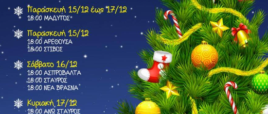 | Σάββατο 23.12 | 19:00 | «Άναμμα Φανών»,Πολιτιστικός Μορφωτικός Σύλλογος Νέας Μηχανιώνας, |