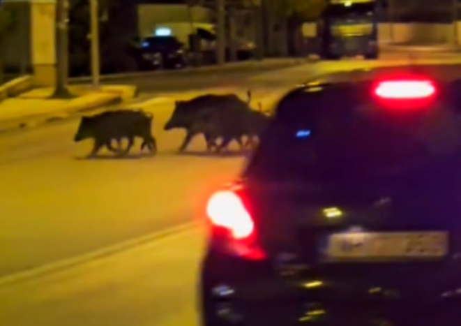 Τα αγριογούρουνα εντοπίστηκαν τα ξημερώματα της Παρασκευής στην οδό Κωνσταντίνου Καραμανλή, προκαλώντας σοκ σε όσους ήρθαν αντιμέτωποι με το θέαμα.