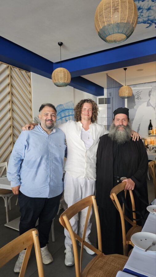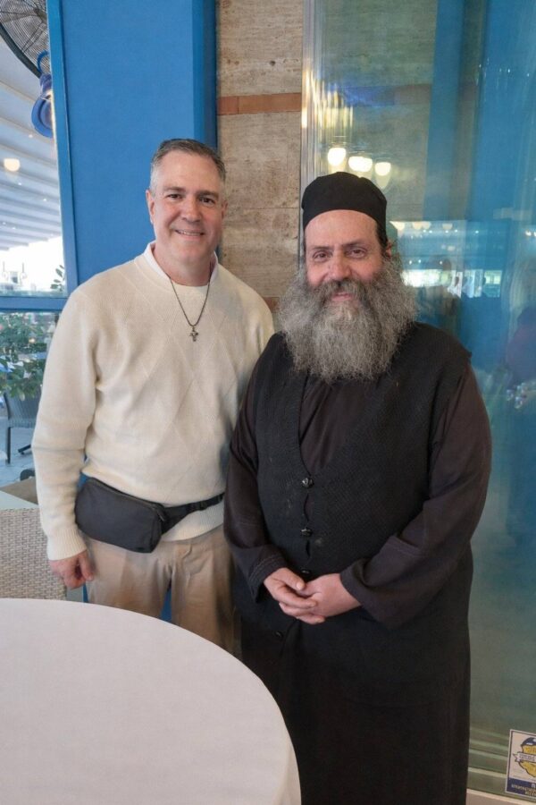 (Ο Αντώνιος βαπτισμένος Χριστιανός Ορθόδοξος πλέον ποζάρει ευτυχής που εκπλήρωσε το όνειρό του δίπλα στον πατέρα Παλαμά)
