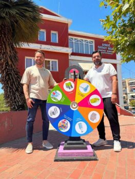 Κεντρικό στοιχείο της δράσης ήταν το διαδραστικό παιχνίδι «Ο Τροχός της Ανακύκλωσης», μέσα από το οποίο τα παιδιά είχαν την ευκαιρία να διασκεδάσουν και ταυτόχρονα να μάθουν. Κάθε μαθητής γυρνούσε τον τροχό και τύχαινε ένα καθημερινό απόρριμμα – όπως πλαστικό, χαρτί, αλουμίνιο ή γυαλί – και έπρεπε να εντοπίσει το σωστό κάδο ανακύκλωσης στον οποίο ανήκει. Το παιχνίδι ενίσχυσε τη συμμετοχή και την κατανόηση των παιδιών γύρω από τη σωστή διαλογή των υλικών.