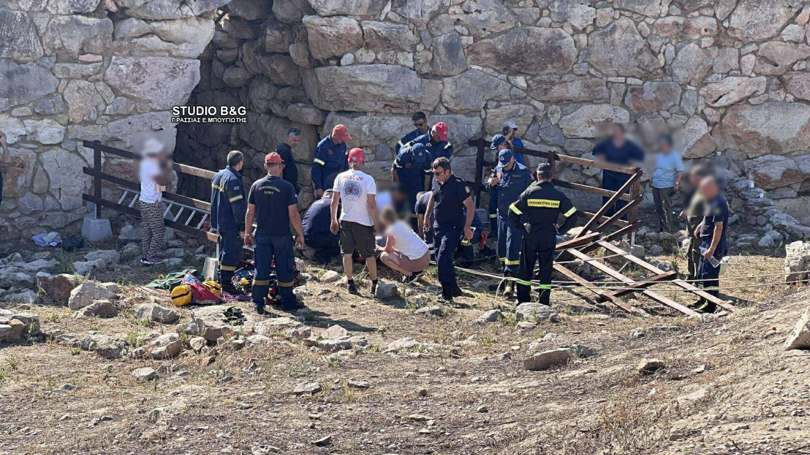 Επιχείρηση διάσωσης στήθηκε το απόγευμα της Τετάρτης (25/6) για τουρίστα που έπεσε κάτω από αδιευκρίνιστες ακόμα συνθήκες, σε πηγάδι κοντά στον αρχαιολογικό χώρο της Τίρυνθας.