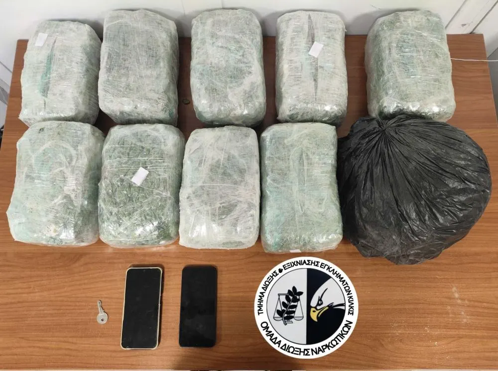 - 10 συσκευασίες με ακατέργαστη κάνναβη, συνολικού βάρους 10 κιλών και 526 γραμμαρίων