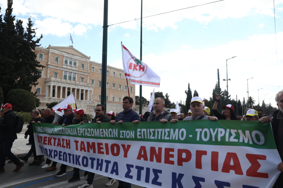 Πορεία προς το Μέγαρο Μαξίμου ξεκίνησαν οι περίπου 300 εργαζόμενοι στον τουρισμό και τον επισιτισμό, οι οποίοι είχαν συγκεντρωθεί έξω από το υπουργείο Εργασίας συμμετέχοντας στην απεργία της Πανελλήνιας Ομοσπονδίας Εργαζομένων στον Επισιτισμό – Τουρισμό (ΠΟΕΕΤ).