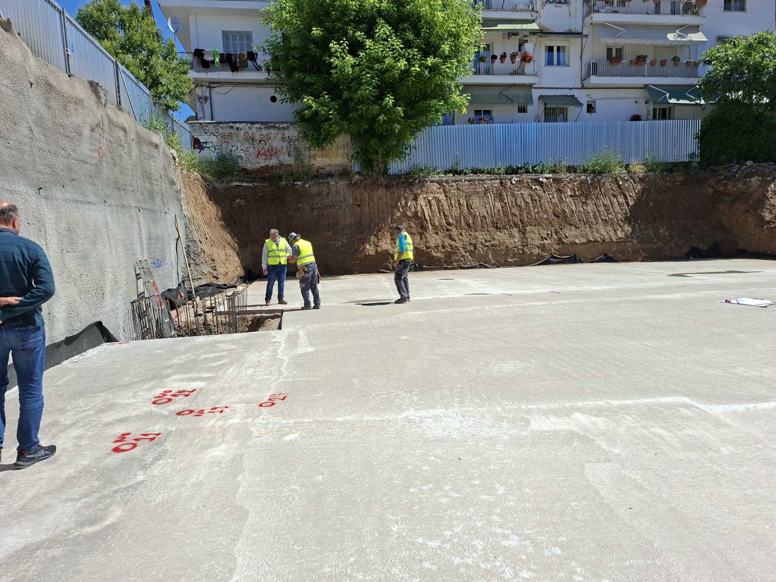 Με γοργούς ρυθμούς προχωρούν οι εργασίες κατασκευής του νέου διδακτηρίου του 5ου Δημοτικού Σχολείου Αμπελοκήπων, στη διασταύρωση των οδών Φιλιπουπόλεως και Τζ. Κέννεντυ.