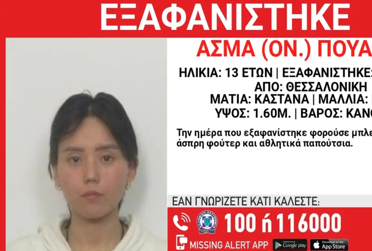 Μεγάλη κινητοποίηση της Αστυνομίας βρίσκεται σε εξέλιξη στη Θεσσαλονίκη, μετά την εξαφάνιση μιας 13χρονης από την περιοχή της πόλης στις απογευματινές ώρες της 27ης Μαρτίου.