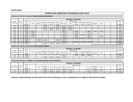 Η δημοτική συγκοινωνία θα λειτουργήσει με τα νέα δρομολόγια σύμφωνα με το παρακάτω πρόγραμμα: