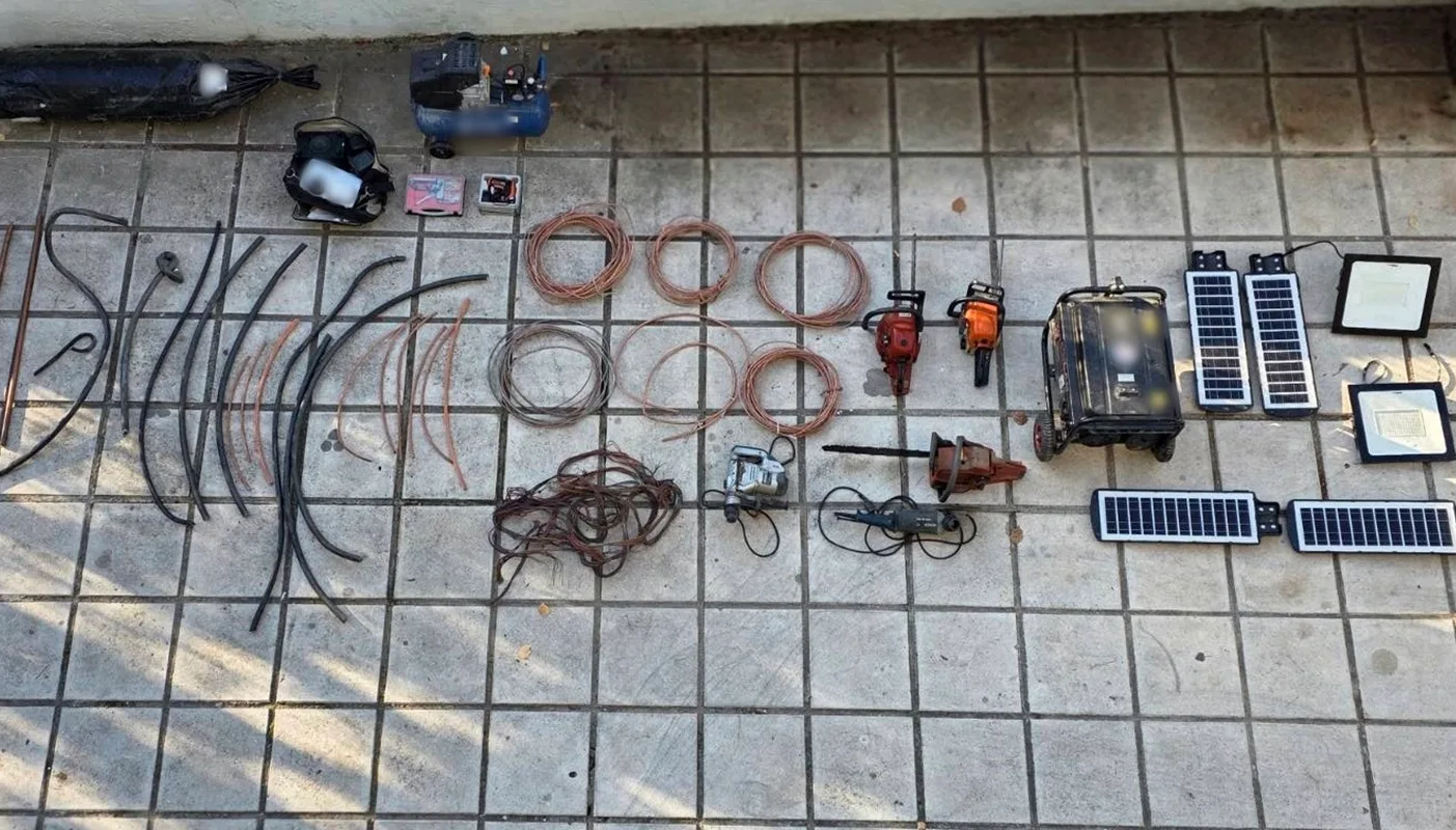 Σύμφωνα με το φωτογραφικό υλικό που έδωσε στη δημοσιότητα η Ελληνική Αστυνομία, οι δράστες αφαιρούσαν, μεταξύ άλλων, αλυσοπρίονα, γεννήτριες, ηλιακές λάμπες, ηχεία και κάθε αντικείμενο αξίας που έβρισκαν στους αποθηκευτικούς χώρους.