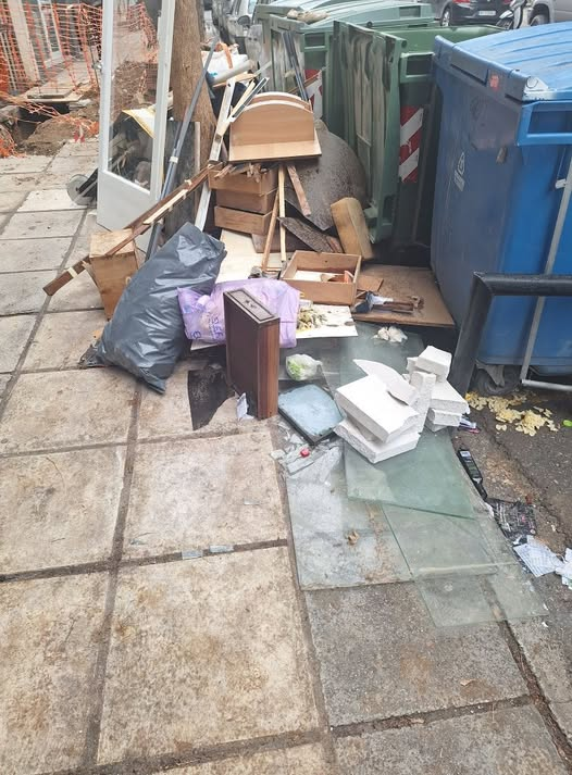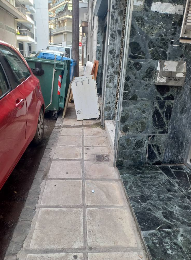 Δύσκολη τη ζωή των πεζών κάνουν τα ογκώδη απορρίμματα που εναποθέτουν ασυνείδητοι στα πεζοδρόμια στο κέντρο της Θεσσαλονίκης. Στην οδό