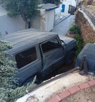 Συγκεκριμένα, τα ξημερώματα το σταθμευμένο όχημα, παρασύρθηκε από δυνατούς ανέμους και έφυγε από το δρόμο, καταλήγοντας μέσα σε κατοικία που βρίσκεται από κάτω. Δεν υπήρξαν θύματα ή σοβαροί τραυματισμοί.