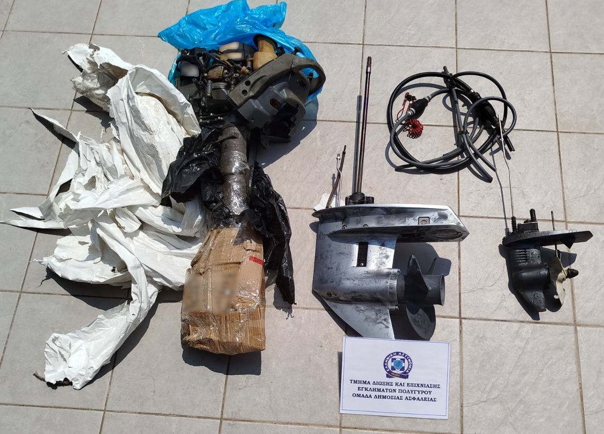 Σε έρευνες που πραγματοποιήθηκαν βρέθηκαν μεταξύ άλλων και κατασχέθηκαν τρεις εξωλέμβιες μηχανές θαλάσσης, δύο συστήματα μετάδοσης κίνησης σκάφους θαλάσσης, ένα κοπίδι, διάφορα διαρρηκτικά εργαλεία και το χρηματικό ποσό των 640 ευρώ.