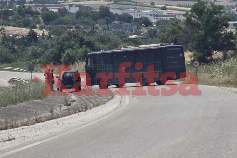 Σε παράδρομο του δρόμου που οδηγεί στη Χαλκιδική οι αστυνομικοί έχουν παρατάξει κλούβες με σκοπό να εμποδίζουν τους αγρότες που έχουν ξεκινήσει από την Επανομή να βγουν στην εθνική οδό.