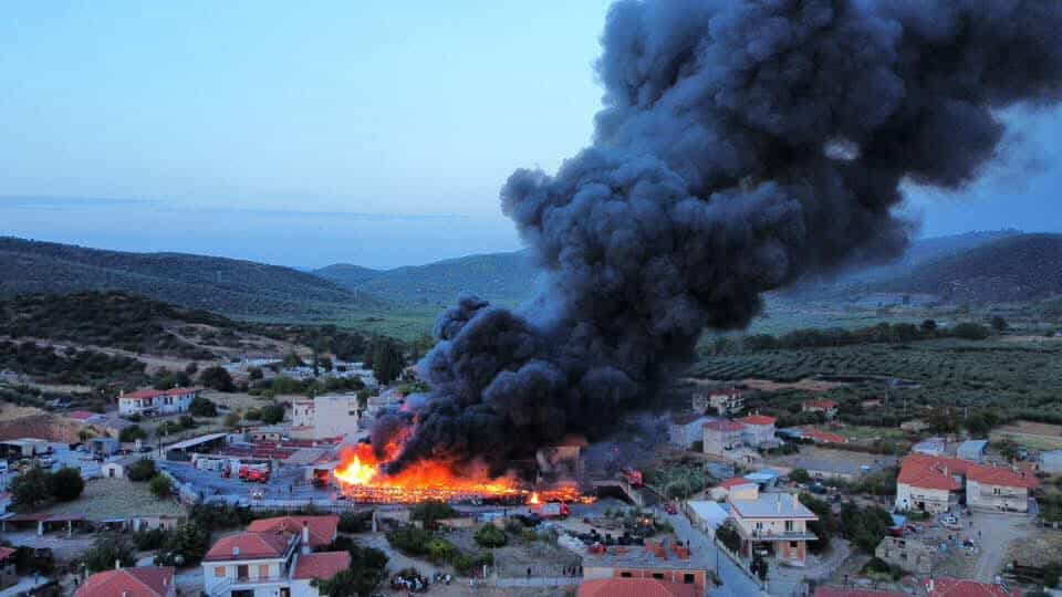 Φωτιά ξέσπασε σε χώρο αποθήκευσης ελαιουργείου στην Ορμύλια της Χαλκιδικής το απόγευμα της Πέμπτης 04/09.