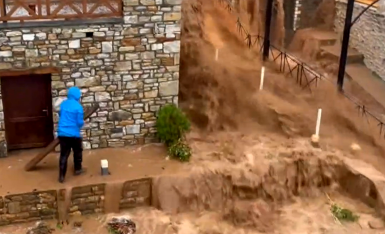 Καταστροφές από την νεροποντή στη Θάσο (VIDEO)