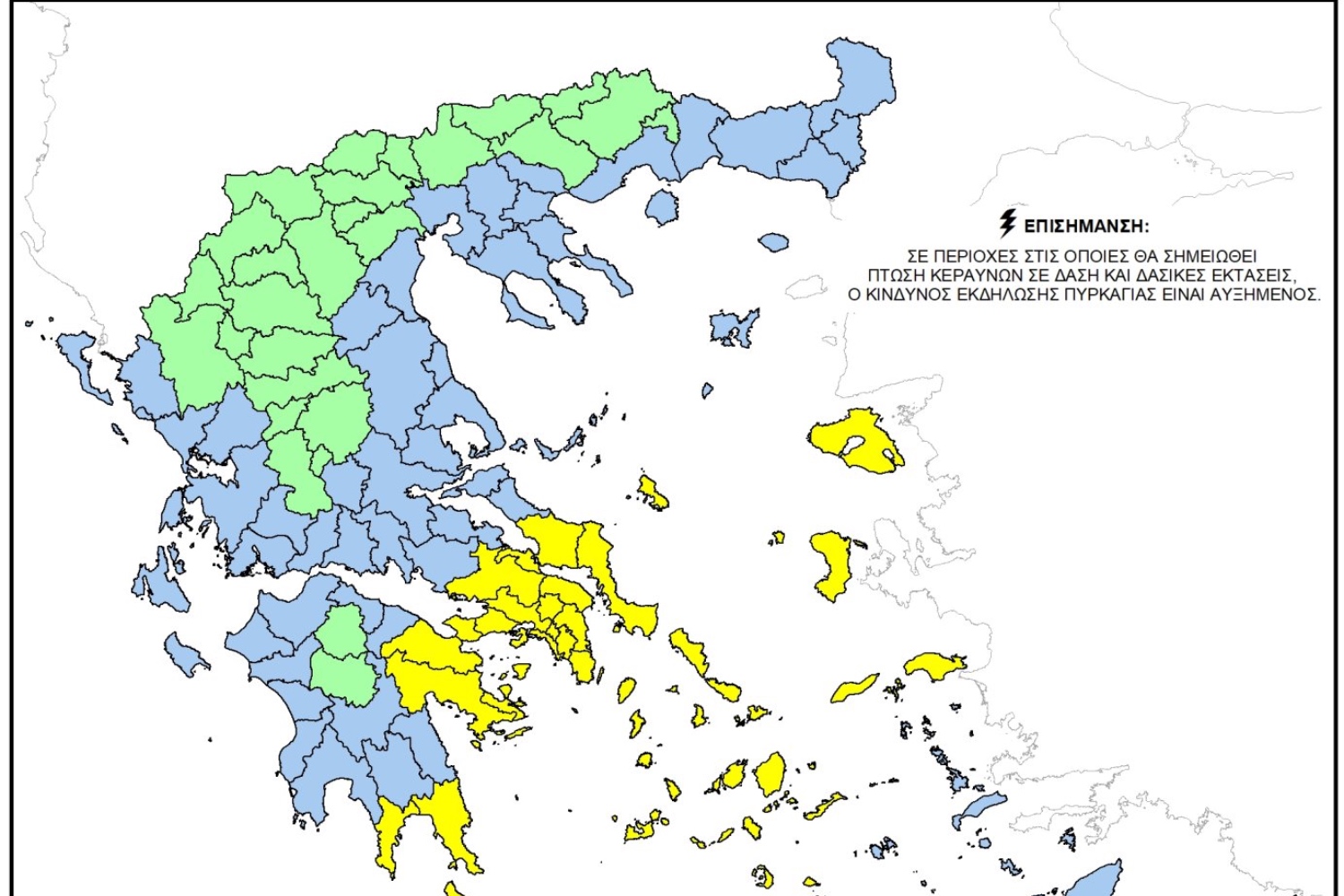 Ειδικότερα, υψηλός κίνδυνος πυρκαγιάς υπάρχει σε Αττική, Κύθηρα, Κορινθία, Αργολίδα, Κυκλάδες, Λέσβο, Χίο, Ψαρά, Σάμο, Ικαρία.