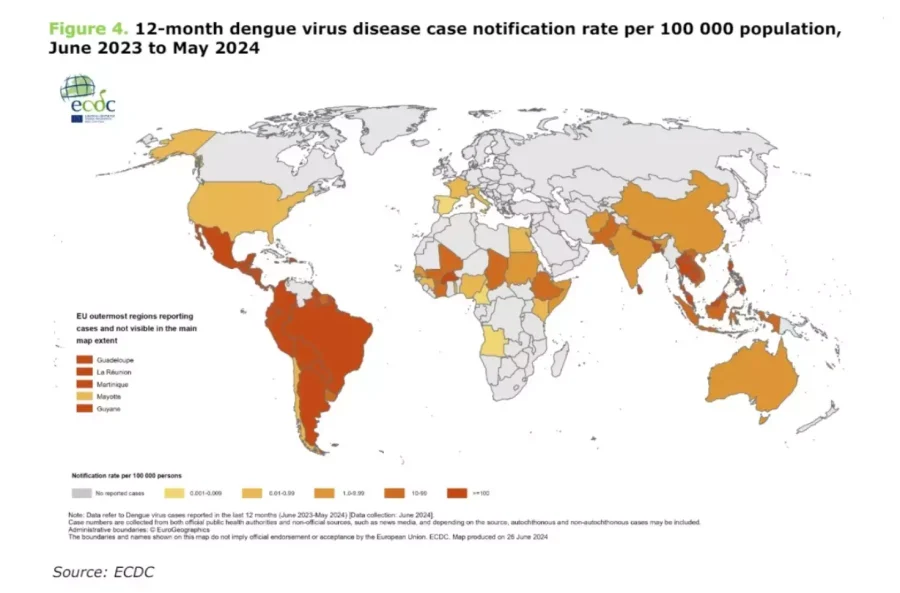 Επομένως, ο κίνδυνος να υπάρξουν εγχώρια κρούσματα στην ΕΕ είναι υψηλός, αφού οι περιβαλλοντικές συνθήκες ευνοούν τη δραστηριότητα των κουνουπιών και την αναπαραγωγή του ιού που προκαλεί δάγκειο πυρετό.