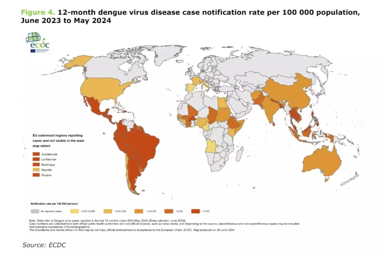 Το ECDC τονίζει πως η αμερικανική περιφέρεια του ΠΟΥ αντιμετωπίζει την μεγαλύτερη επιδημία δάγκειου πυρετού στην ιστορία της. Το γεγονός αυτό έχει αυξήσει σημαντικά εφέτος τον αριθμό των εισαγόμενων κρουσμάτων στην Ευρωπαϊκή Ένωση.