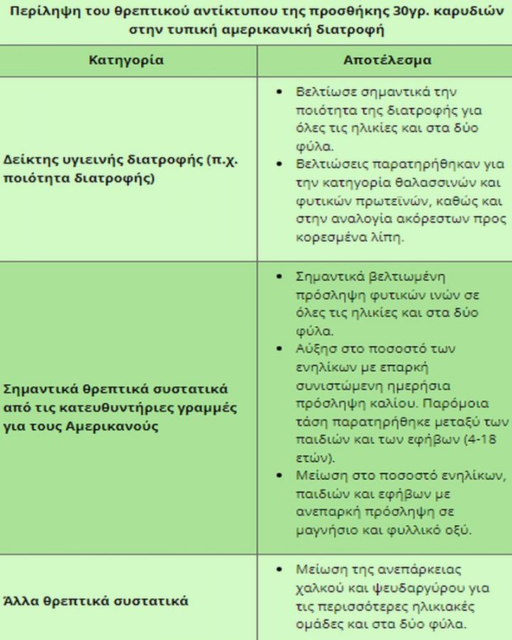 Η προσθήκη 30γρ. καρυδιών στην τυπική καθημερινή δίαιτα των Αμερικανών είχε ως αποτέλεσμα τα ακόλουθα.