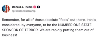 Λίγο μετά την επίθεση, ο πρόεδρος Ντόναλντ Τράμπ, με ανάρτησή του στην πλατφόρμα Truth Social, επιβεβαίωσε την υποστήριξή του στην επιχείρηση. Χαρακτήρισε το Ιράν ως τον «ΝΟΥΜΕΡΟ ΕΝΑ ΚΡΑΤΙΚΟ ΧΟΡΗΓΟ ΤΗΣ ΤΡΟΜΟΚΡΑΤΙΑΣ» και συμπλήρωσε με νόημα: «Τους βγάζουμε γρήγορα εκτός παιχνιδιού!». Η τοποθέτηση αυτή αντανακλά τη σκληρή γραμμή που υιοθετεί ο Λευκός Οίκος, επιδιώκοντας την αποδυνάμωση των οικονομικών πηγών του ιρανικού καθεστώτος.