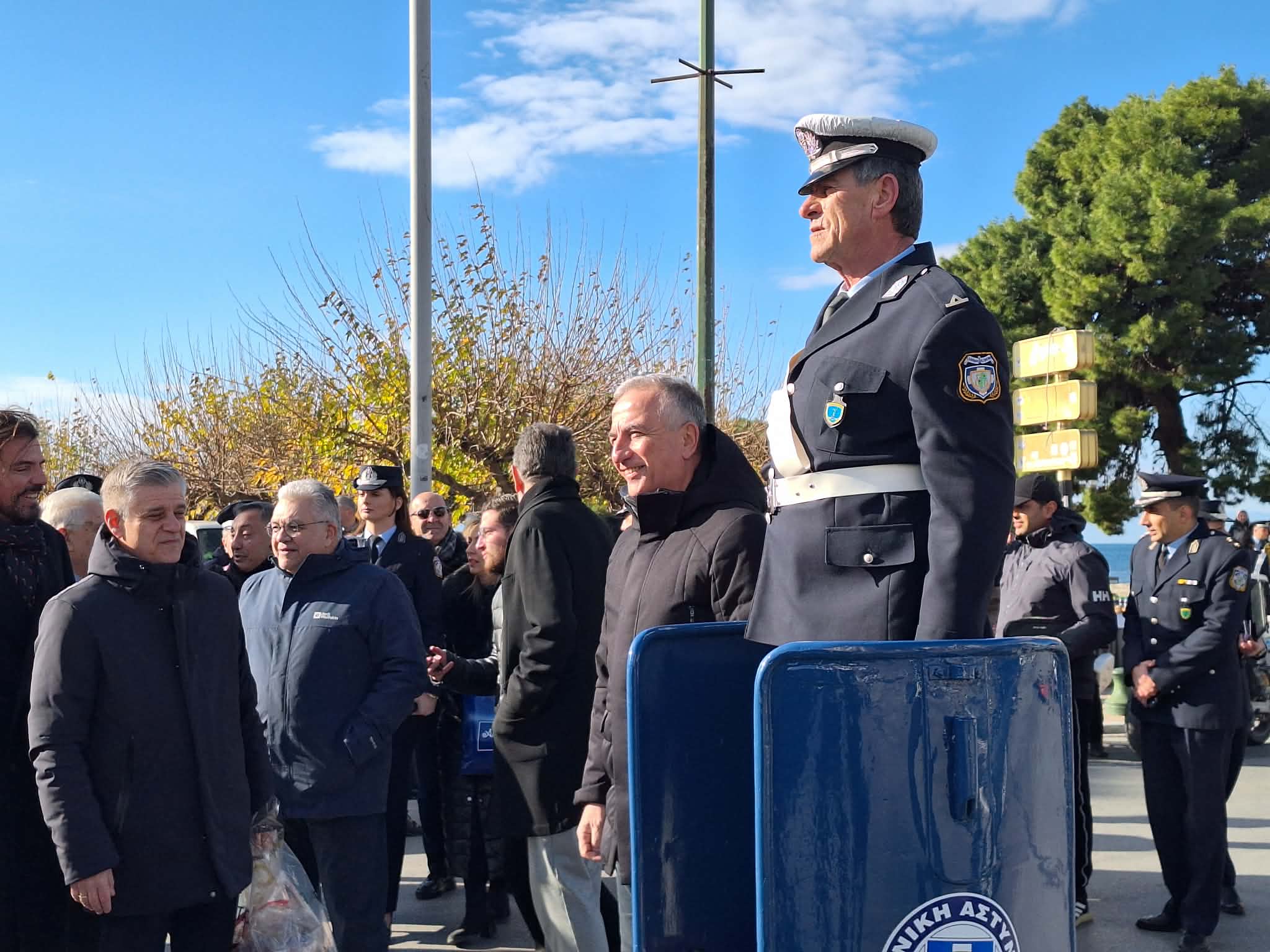 Ο συντονιστής του γραφείου του Πρωθυπουργού στη Θεσσαλονίκη, Γιάννης Παπαγεωργίου, ευχαρίστησε από την πλευρά του την Τροχαία και συνολικά την Ελληνική Αστυνομία για την προσφορά τους στην πόλη, ενώ βουλευτές και εκπρόσωποι φορέων απηύθυναν ευχές για τη νέα χρονιά.