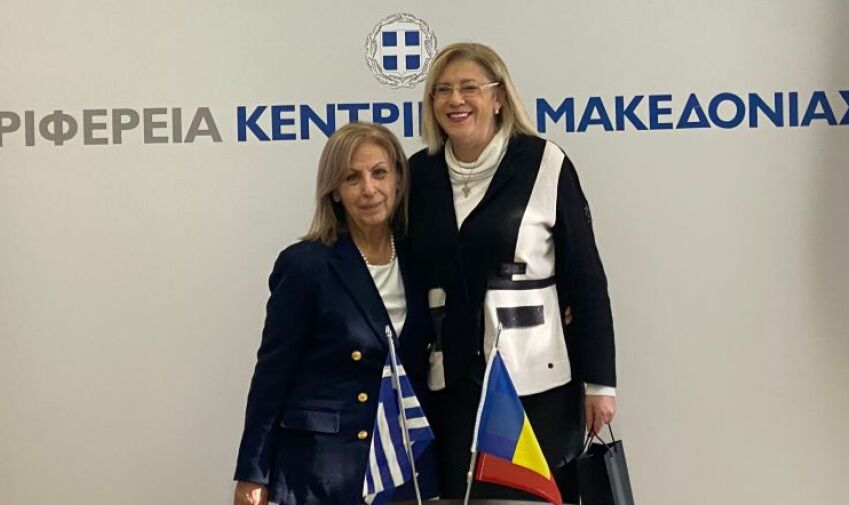 Συνάντηση με τη Γενική Πρόξενο της Ρουμανίας στη Θεσσαλονίκη, Κορίνα Κρέτσου, είχε η περιφερειάρχης Κεντρικής Μακεδονίας, Αθηνά Αηδονά, στο κτήριο Διοίκησης της Περιφέρειας, στη βίλα Αλλατίνη.