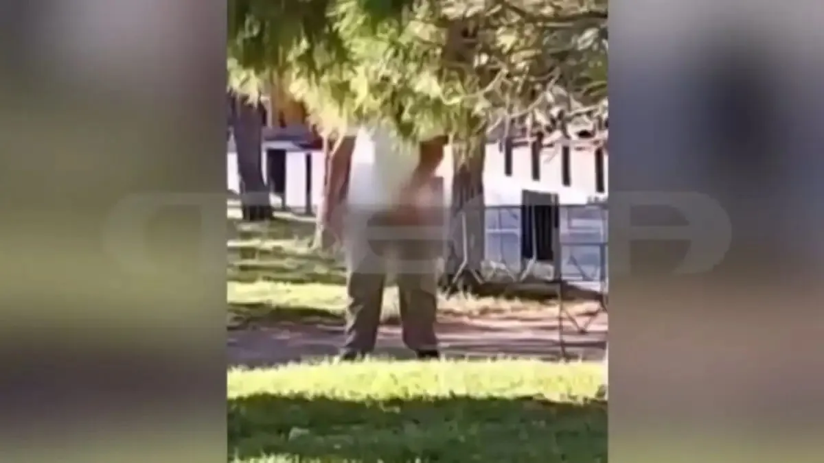 Βρίσκεται έξω από το 5ο λύκειο Θεσσαλονίκης, δίπλα στο Μέγαρο Μουσικής, όταν ο άνδρας που φαίνεται στο βίντεο, την πλησιάζει και κατεβάζει το παντελόνι του.