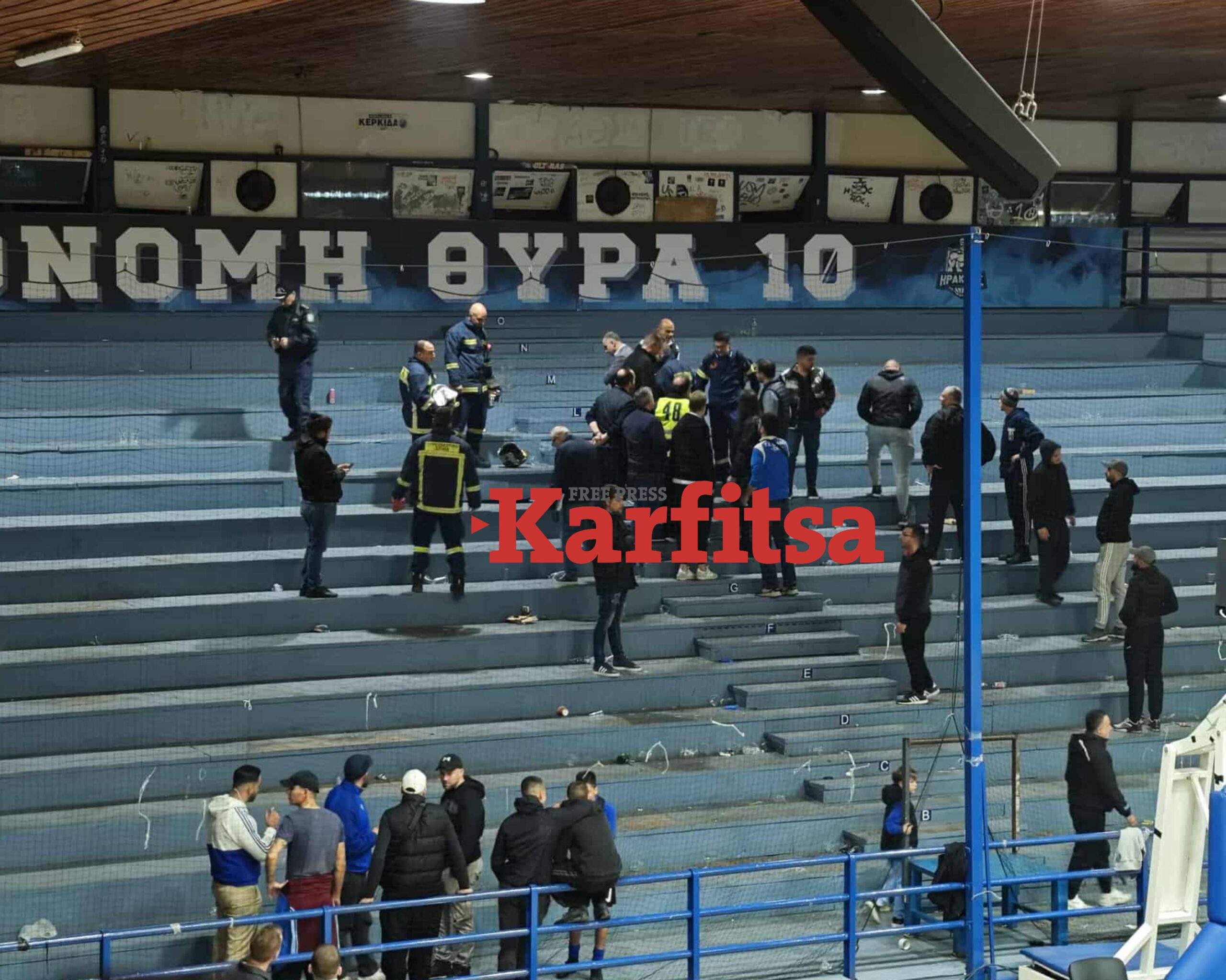 Ειδικότερα, στον αγώνα που πριν λίγο ολοκληρώθηκε, κατέρρευσε ξύλινη κερκίδα.