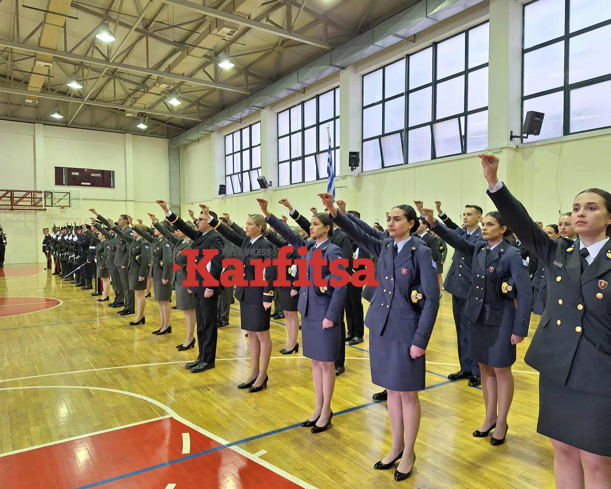 Παρουσία εκπροσώπων της κυβέρνησης, της τοπικής αυτοδιοίκησης και του στρατού, πραγματοποιήθηκε η δοξολογία και οι αξιωματικοί εκφώνησαν τον όρκο τους. «Από σήμερα ανοίγει για εσάς ένα νέο κεφάλαιο ζωής, προσωπικής και επαγγελματικής. Σήμερα επιβραβεύονται οι κόποι, οι αγώνες και οι θυσίες όλων των ετών της φοίτησής σας», επεσήμανε στο πλαίσιο της τελετής ο διοικητής της σχολής, Ταξίαρχος, Πέτρος Κουριδάκης.