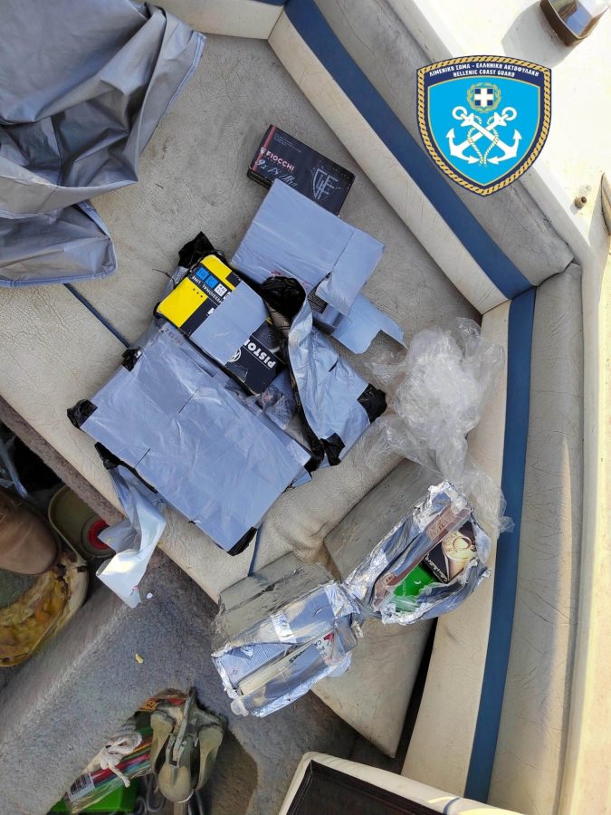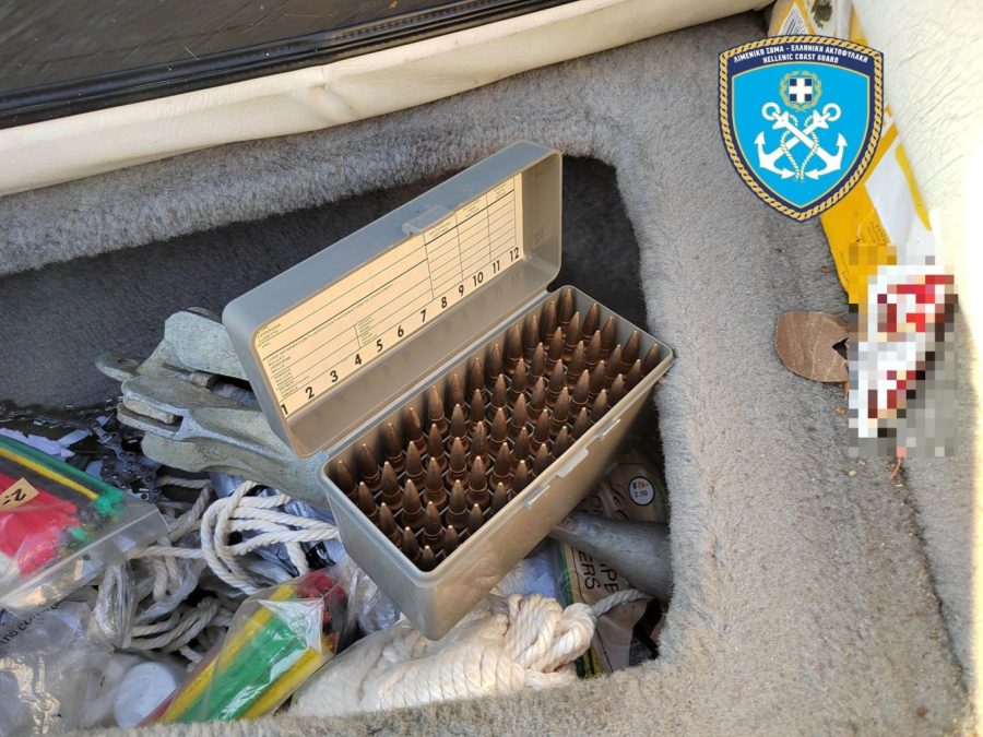 Μετά από έρευνα του Λιμενικού στο σκάφος του, βρέθηκαν 61 όπλα διαφόρων διαμετρημάτων και τύπων (όπλα χειρός, πιστόλια, περίστροφα, σιγαστήρες και άλλα) με διάφορα παρελκόμενα καθώς και 2.916 φυσίγγια διαφόρων διαμετρημάτων και τύπων, κατάλληλων και για πολεμική χρήση.
