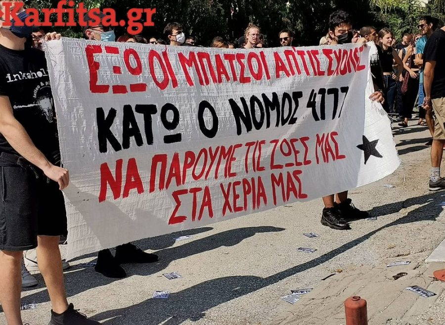 Οι φοιτητές συγκεντρώθηκαν το μεσημέρι έξω από τη σχολή Θετικών Επιστημών και φώναξαν συνθήματα κατά του νόμου 4777 για την αστυνόμευση των πανεπιστημίων και κατά των αστυνομικών.