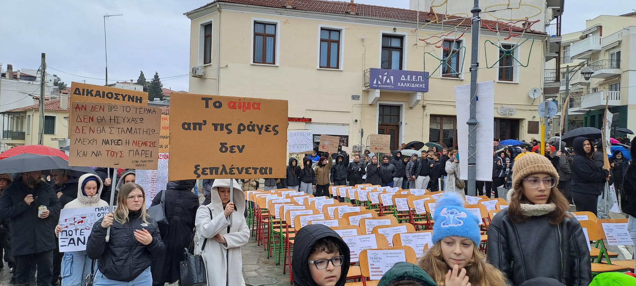 Μεγαλείωδης ήταν η συμμετοχή στη συγκέντρωση για τα θύματα των Τεμπών και στον Πολύγυρο Χαλκιδικής.