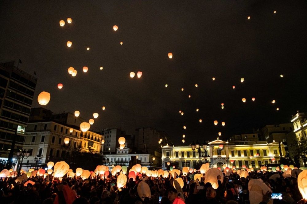 Μπροστά από το Δημαρχείο της Αθήνας, σε χριστουγεννιάτικο σκηνικό, μικροί και μεγάλοι άναψαν περισσότερα από 1.500 βιοδιασπώμενα φαναράκια και τα άφησαν να ανέβουν ψηλά στον ουρανό, μαζί με τις ευχές τους για ένα καλύτερο αύριο, γεμάτο υγεία, αγάπη και ελπίδα.