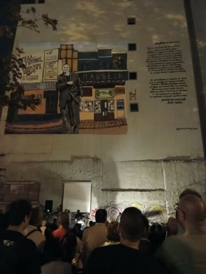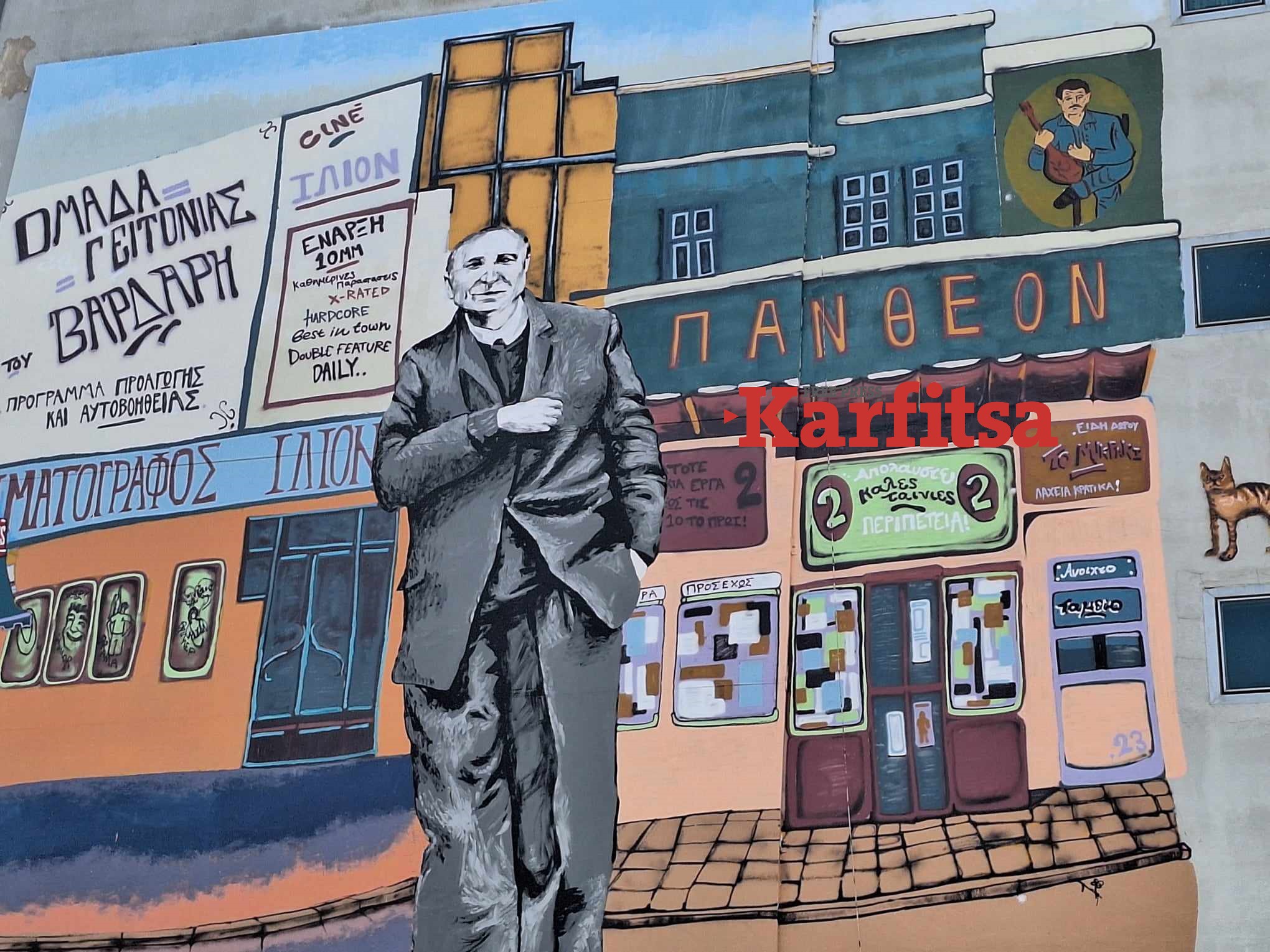 Η τοιχογραφία με τον Ντίνο Χριστιανόπουλο έγινε πριν λίγες εβδομάδες σε υπαίθριο πάρκινγκ στη συμβολή των οδών Οδυσσέως και Αφροδίτης,